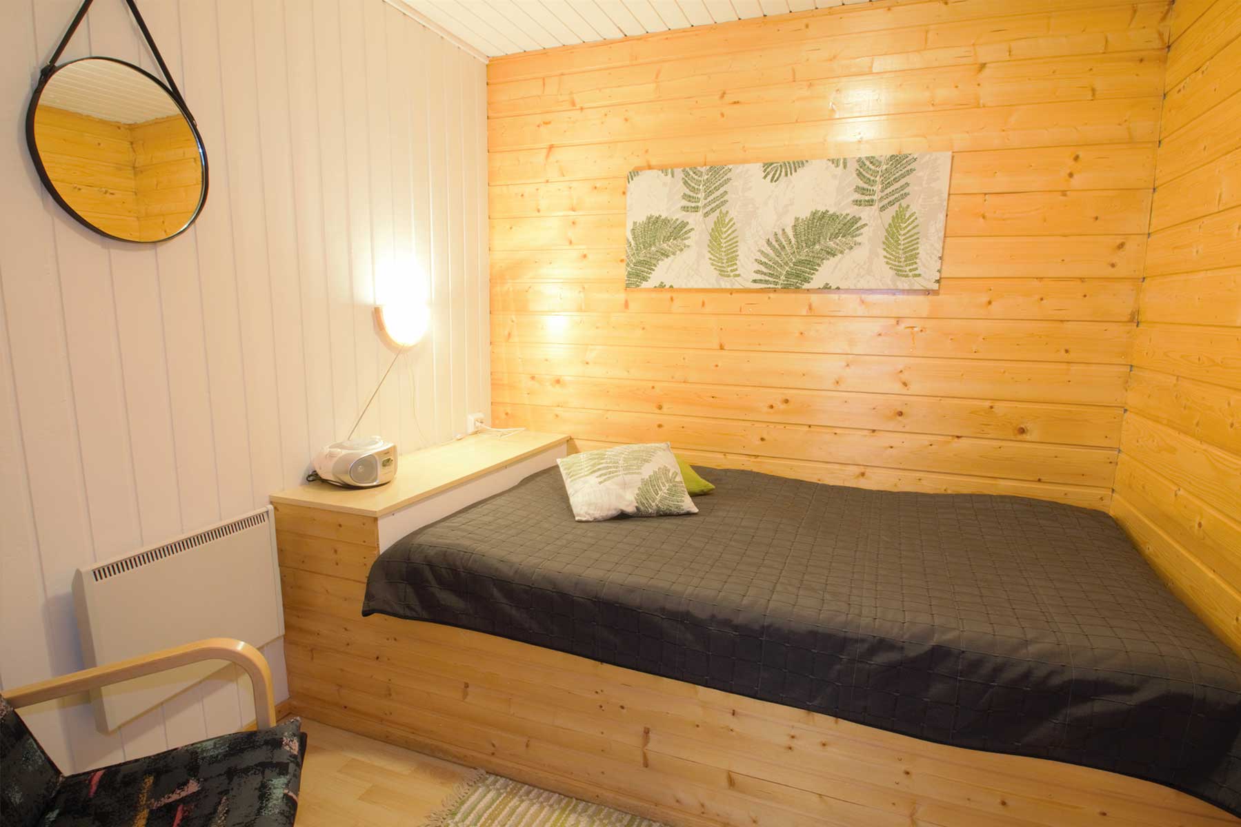 Tilava, hyvin varustettu mökki kuudelle. Mökin isosta maisemaikkunasta avautuu upea näky Korpijärvelle ja voit aistia järviluonnon mökin sisälle asti. Modernilta saunaosastolta on suora käynti mökin omalle hienohiekkaiselle rannalle. Sauna lämpenee perinteiseen suomalaiseen tapaan puulla. Etelään avautuvalla matalalla rannalla viihtyvät isot sekä pienet lomailijat. Hyvät ja kirkkaat kalavedet. Tälle mökille myös lemmikit ovat tervetulleita.