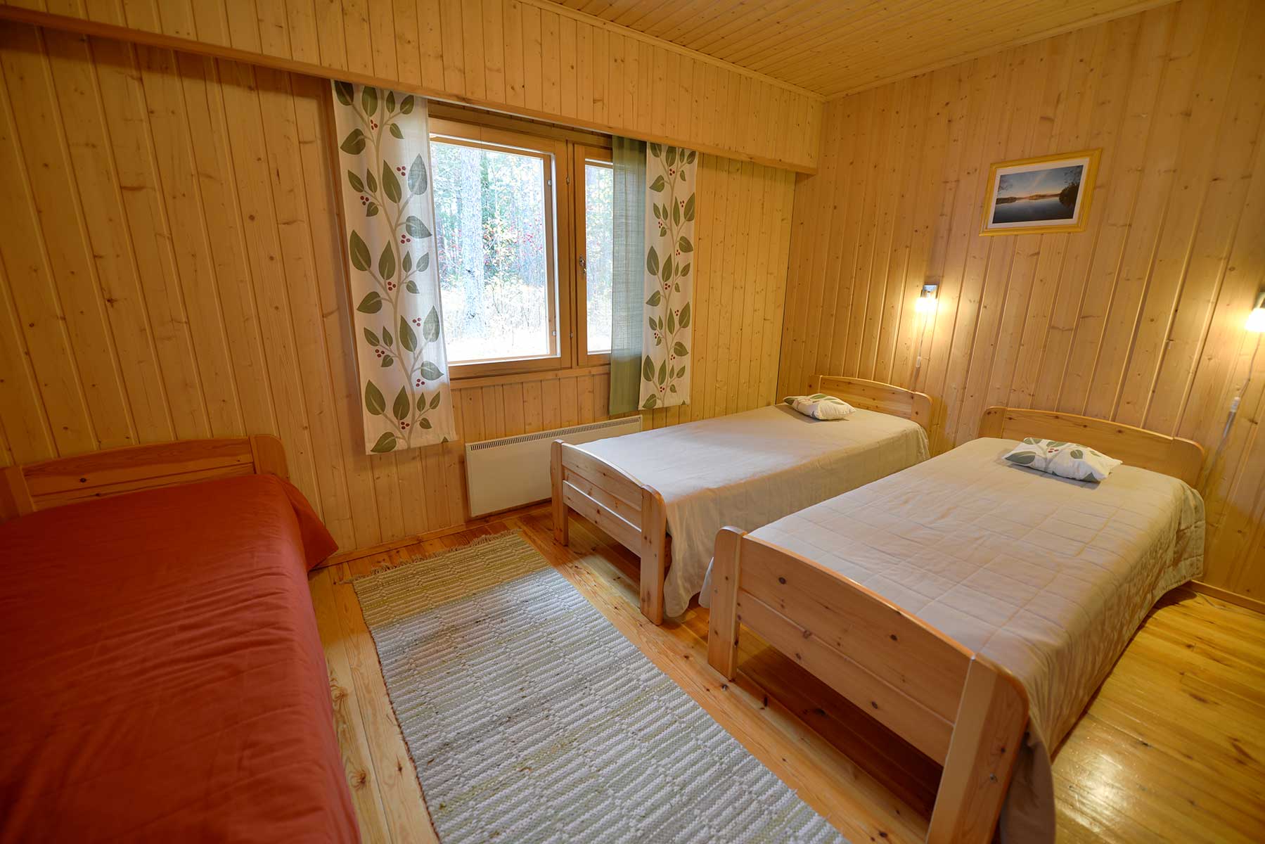 • 1 kolmen hengen makuuhuone, kolme sänkyä 80 cm